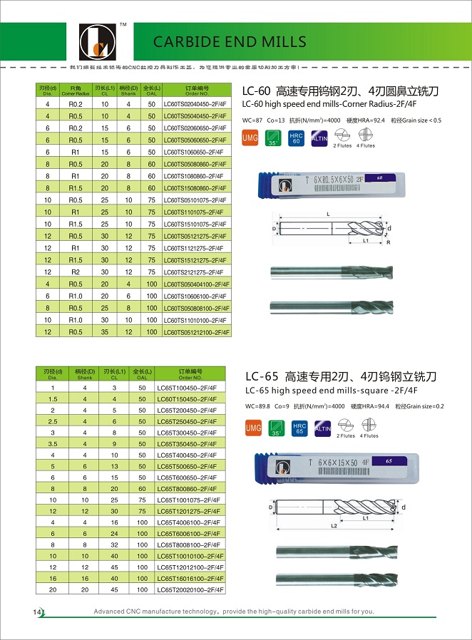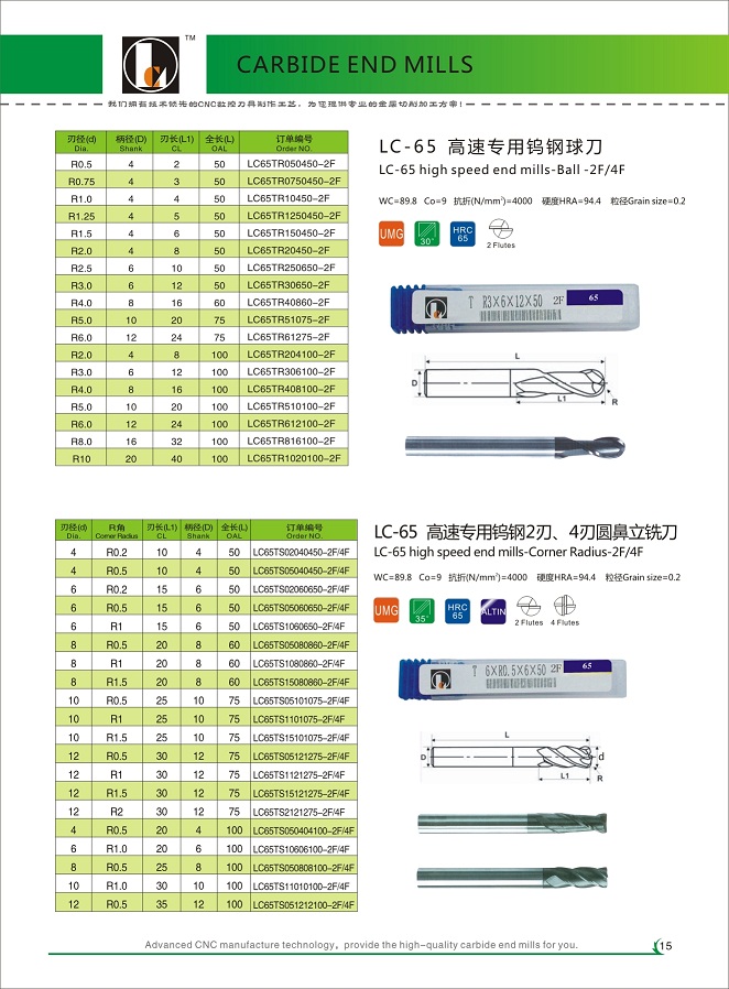 LC-60/65 CARBIDE END MILLS