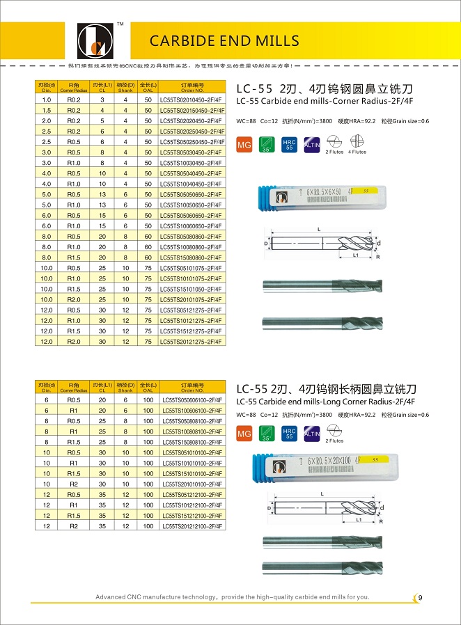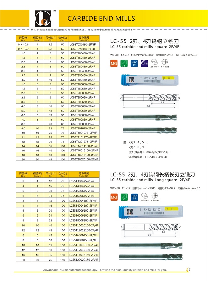 LC-55 CARBIDE END MILLS
